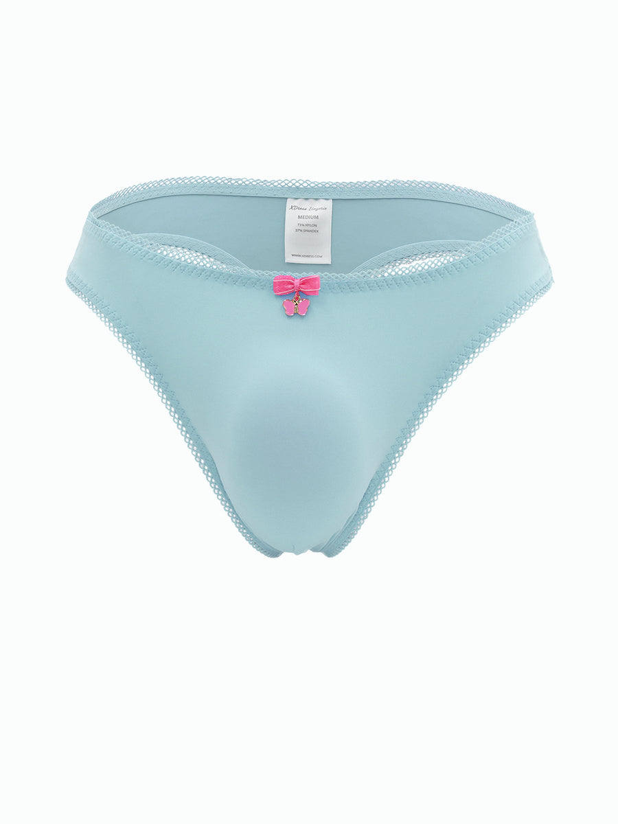 Cute from every angle, this men’s thong blends softness, stretch, and a touch of playful charm. The smooth blue fabric sculpts comfortably to your body, while matching trim outlines each curve with a feminine edge. A dainty bow and shiny metallic charm sit at the center, while the sexy thong back ensures these panties will have you looking as great as you'll feel.