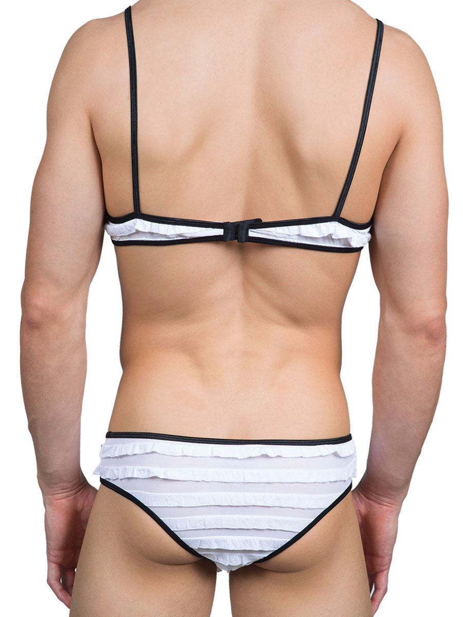 We all need a bra that’s charming, like our new Ravishing in Ruffles Bra! Boasting feminine and translucent ruffles, this softly shaped undergarment for men is a lovely choice paired with the Ruffle Panty (Z078) . The cups make the most of a man's bust. Styled with adjustable hook and eye clasp, as well as stretchy straps for a perfect fit.