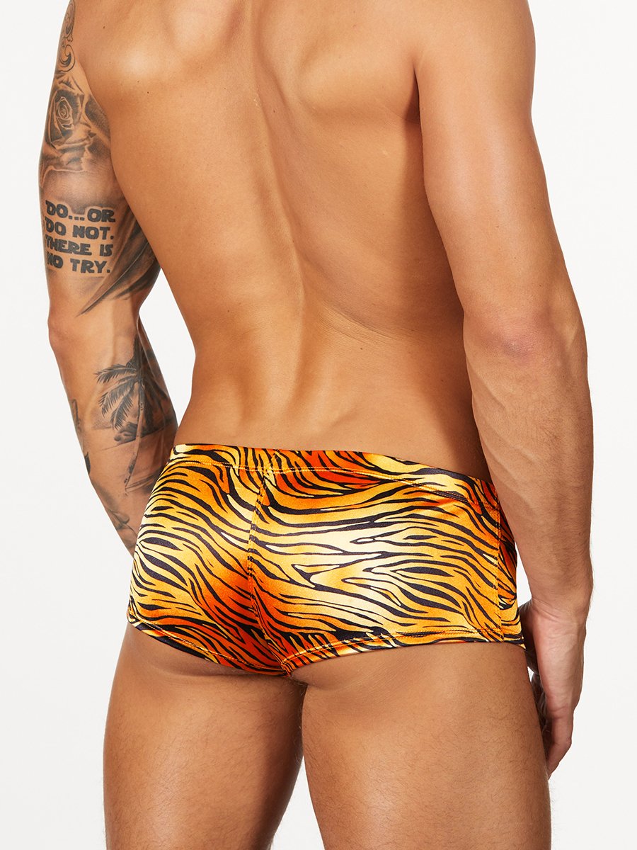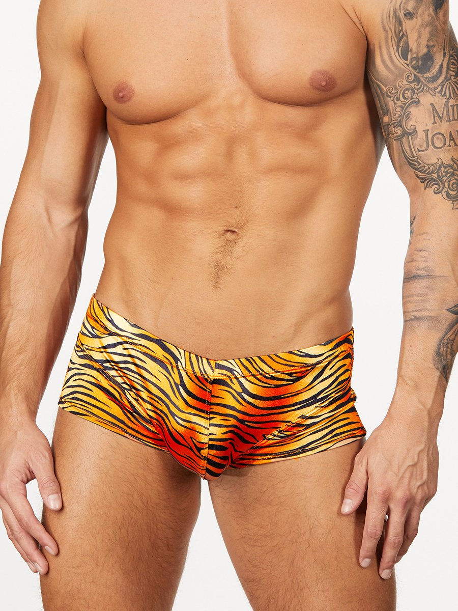 The newest edit in our lineup of smooth satin underwear. Colorful prints in a sleek booty shorts design feature a comfortable contoured pouch that allows plenty of room for movement, a very short inseam of 2", and a seamless shaped back panel. The satin is printed with our exclusive designs and feels smooth and slippery against the skin. This is a limited-edition design, so order a pair soon!